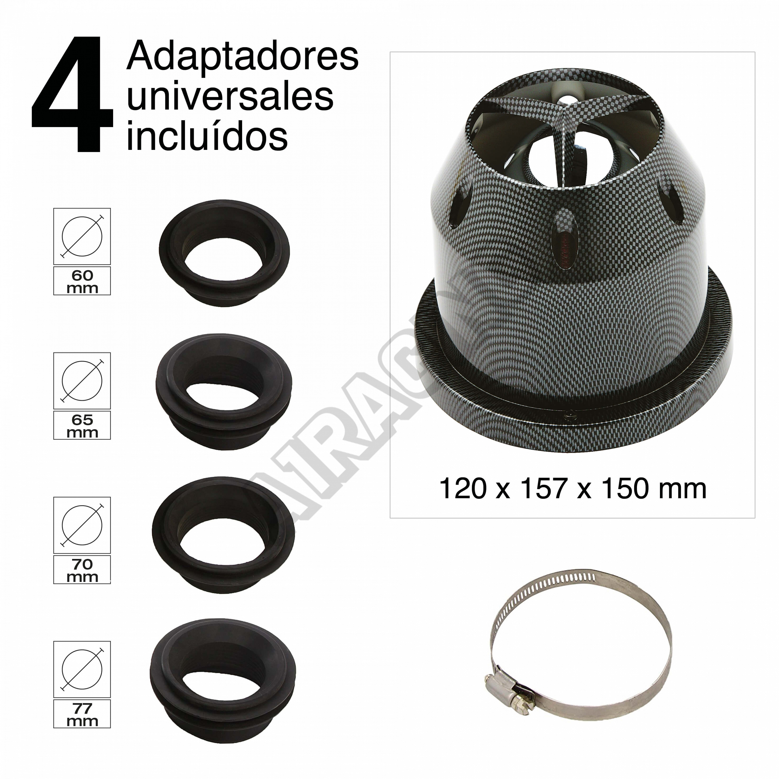 Športový vzduchový filter s tepelným chróm štítom Rozměr: 135x170x105mm Adaptéry: 60mm/63mm/70mm/77