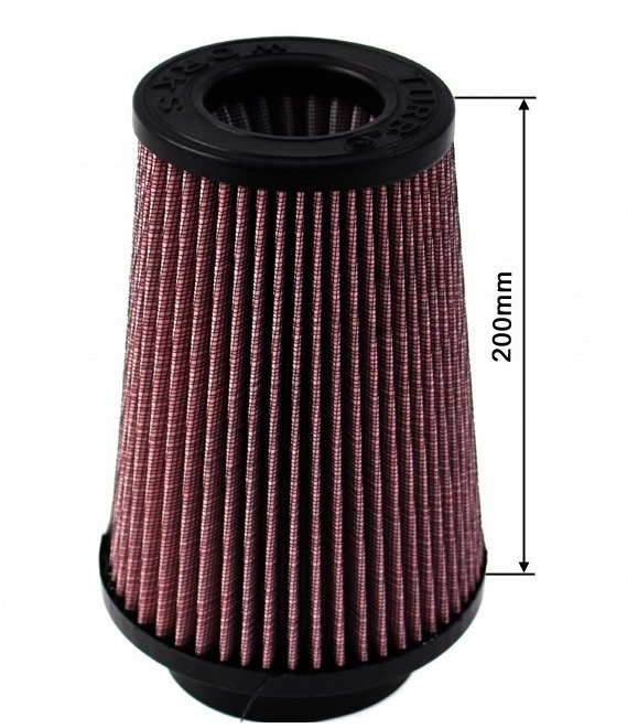 Športový vzduchový filter TurboWorks kužeľ výška 200 mm - priemer pre nasadenie 60,70 nebo 76 mm