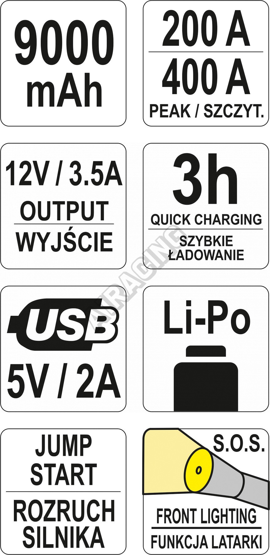 | Funkcia | Jumpstart, Svietidlo s SOS |