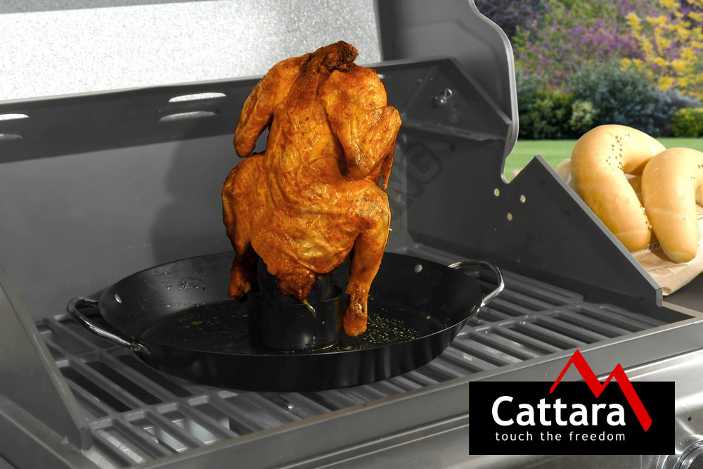 Panvica so stojanom na grilovanie kurčaťa s priestorom na marinádu, či šťavu z kurčaťa. Panvica je v