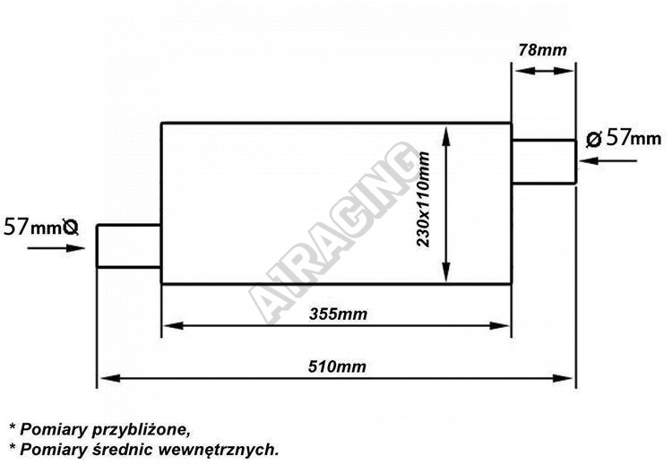 Všetky rozmery tlmiča sú uvedené na obrázku v galérii.