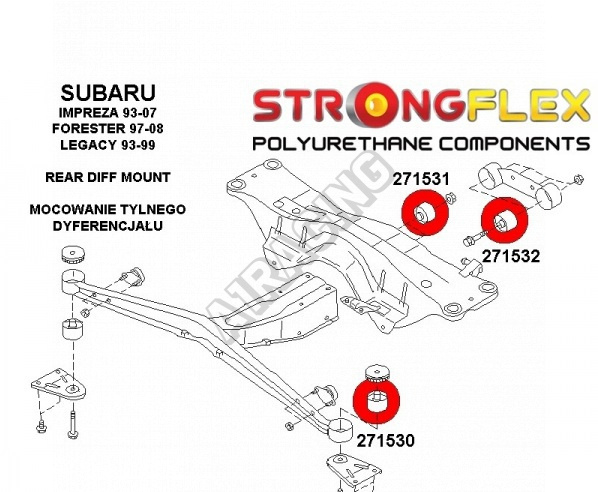 Subaru Forester do 2002-08 SG StrongFlex (tvrdost 80ShA) kompletní sestava silentbloků na celé auto obsahuje :