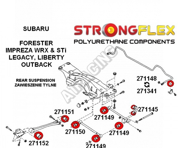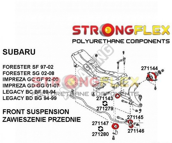 Subaru Impreza 2001+ GD GG StrongFlex (tvrdost 80ShA) kompletní sestava silentbloků na celé auto obsahuje :