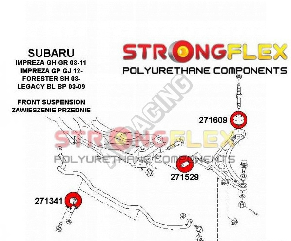 Subaru Impreza 2001+ GP GJ StrongFlex Sport sestava silentbloků jen pro přední nápravu 6 ks obsahuje: