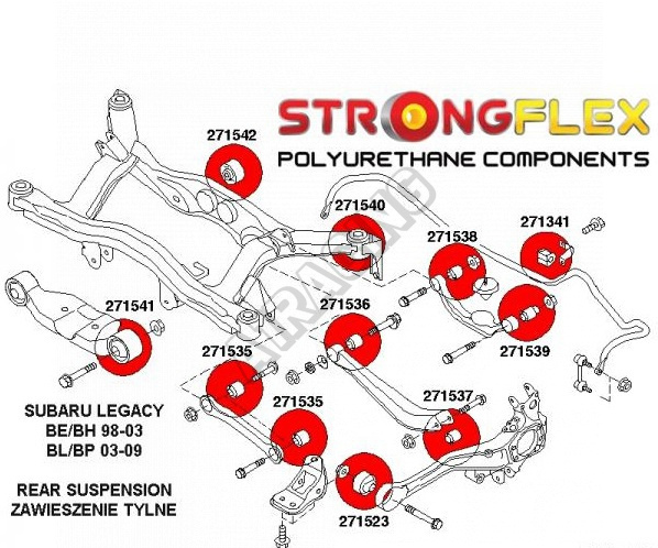 Subaru Legacy II 2006+ StrongFlex Sport sestava silentbloků jen pro zadní nápravu 16 ks obsahuje: