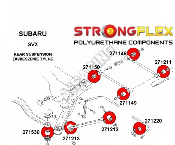 Subaru SVX StrongFlex Sport sestava silentbloků jen pro zadní nápravu 16 ks Tvrdší silentbloky dodá