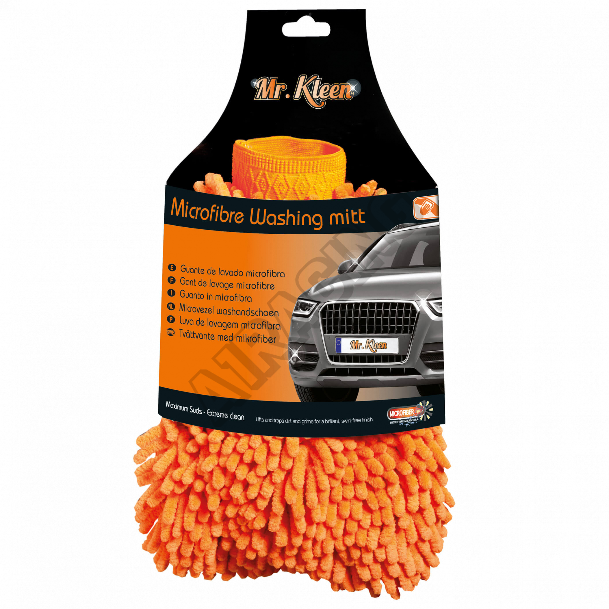 Kvalitné umývacie absorbčné rukavice z mikrovlákna spoločnosti MR. Kleen je určená na mokré i suché čistenie. Absorbuje viac vody ako bežné huby. Zaistí aj rovnomerné nanesenie šampónu. Je ideálny aj na stieranie prachu - hrubé vlákna pôsobia ako magnet na prach. Pojme niekoľkonásobne viac prachu ako bežná prachovka. Oranžová strana mikrovlákien je absorbčná a ideálna na umývanie i leštenie do vyvedenia lesku. Druhá strana je hrubšia a môže byť použitá pre výraznejšie nečistoty a zaschnuté miesta na karosérii vozidla. Rukavice ľahko sa umývajú v práčke a znovu používajú.