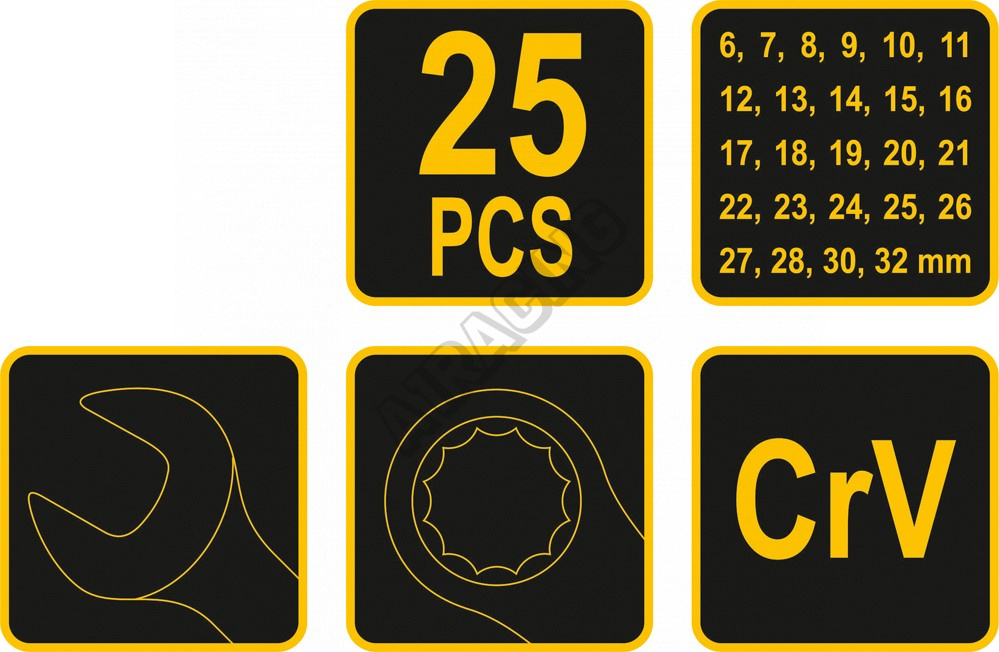 0recenzia produktuSúprava kľúčov očkoplochých 25 ks 6 - 32 mm CrV