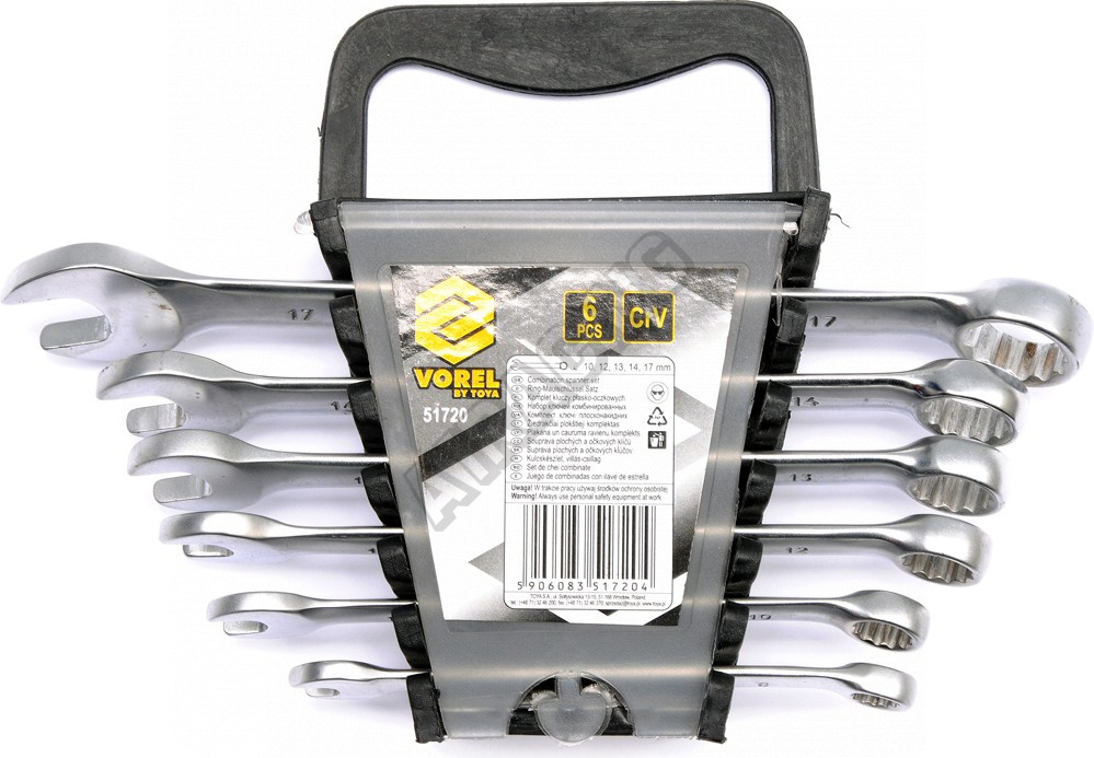 Súprava kľúčov očkoplochých 6 ks 8 - 17 mm vyrobená z kvalitnej CrV ocele, uložená v prehľadnom plastovom puzdre.