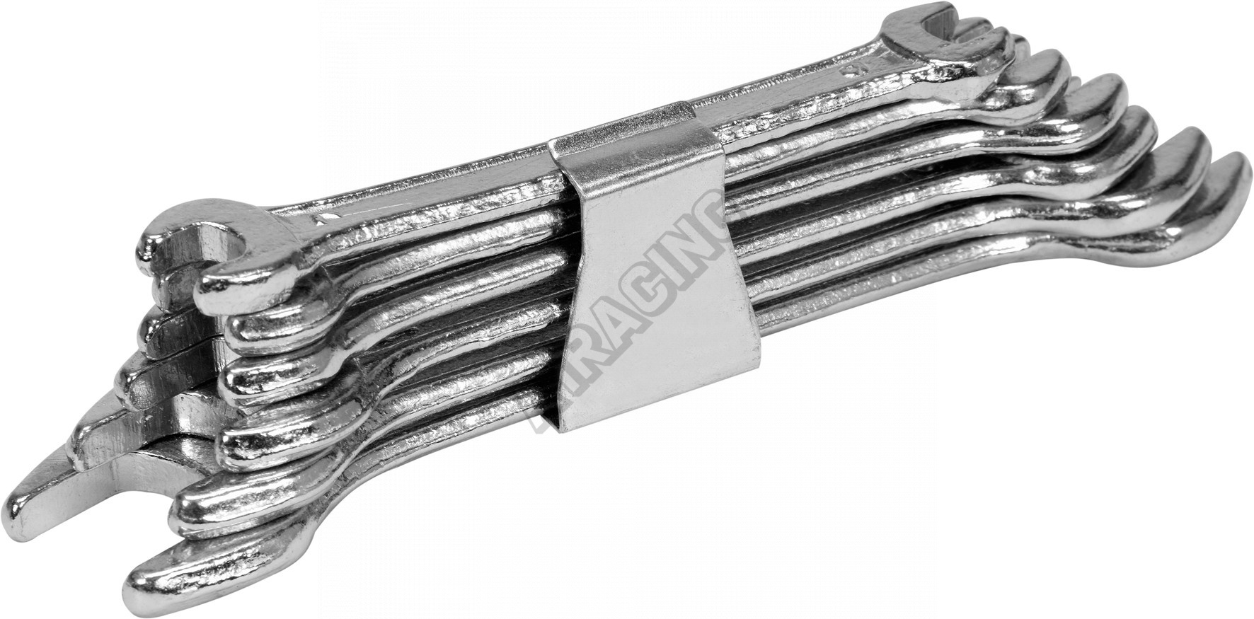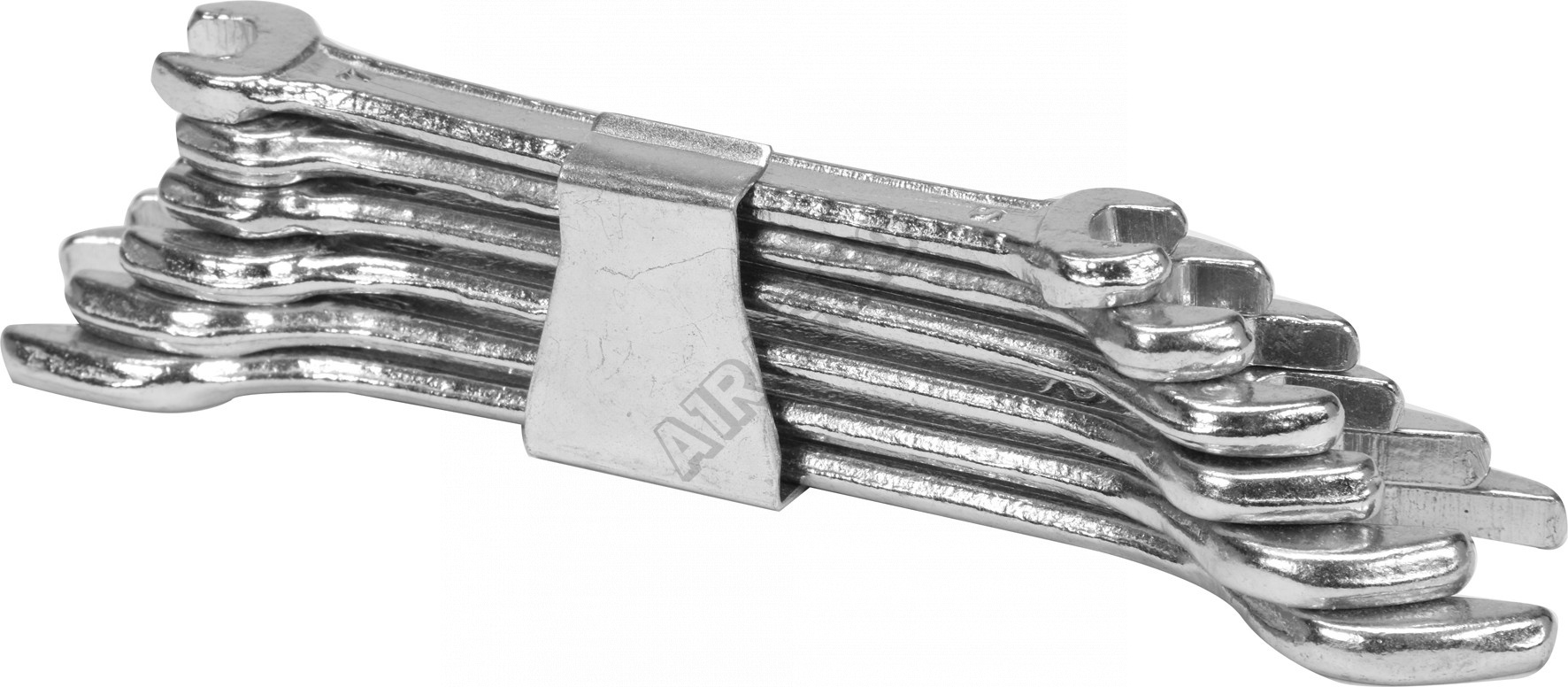 Súprava kľúčov s dvojitým otvoreným koncom 6 - 17 mm. Vyrobené z uhlíkovej ocele. Kľúčové hlavy sklopené o 15 stupňov.