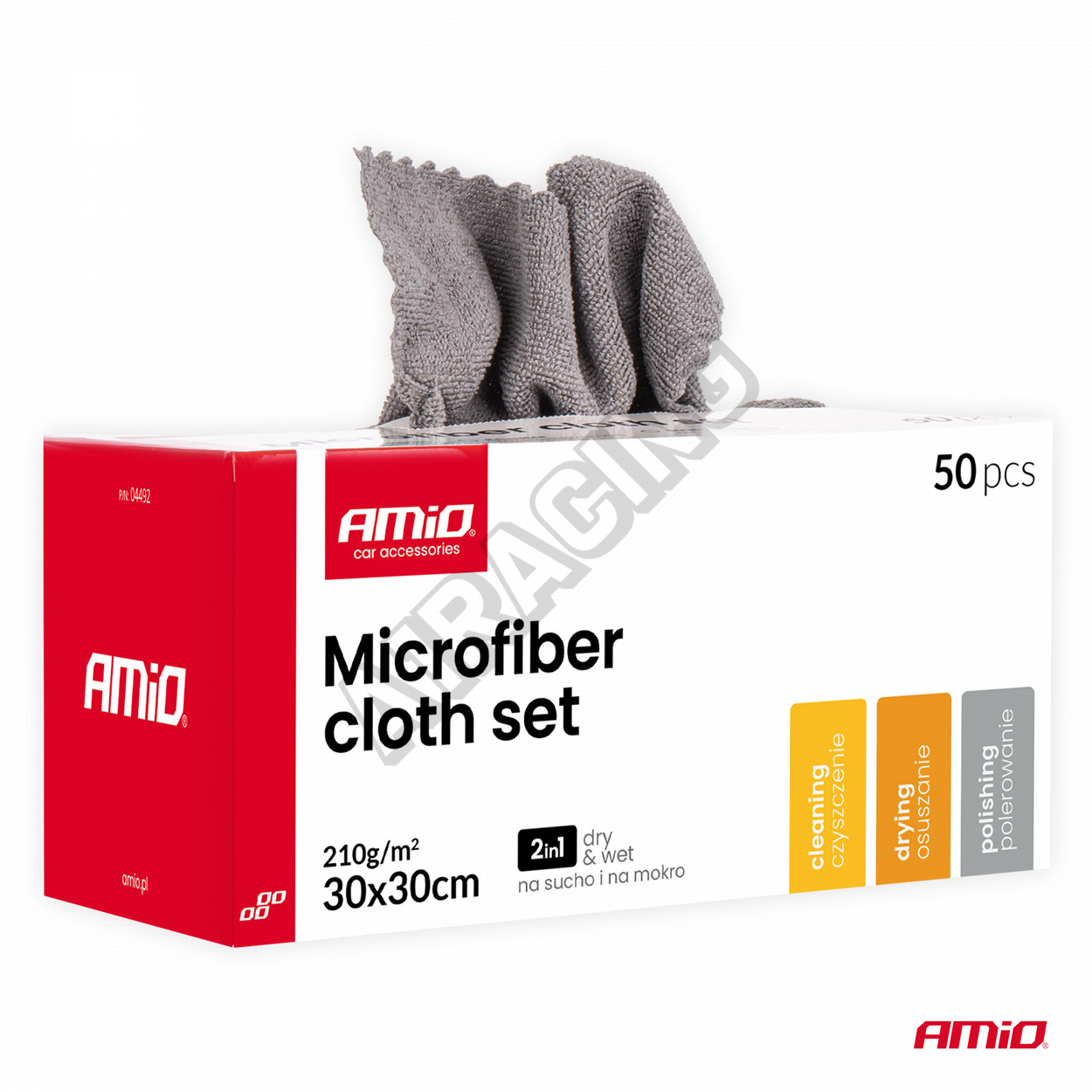 Súprava utierok z mikrovlákna 50ks. 210gsm 30x30cm AMIO-04492