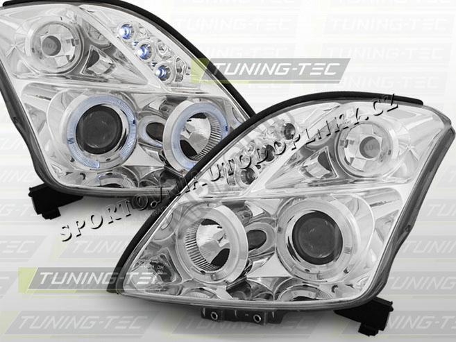 SUZUKI SWIFT 2005-10 PŘEDNÍ ČÍRÁ SVĚTLA ANGEL EYES CHROME