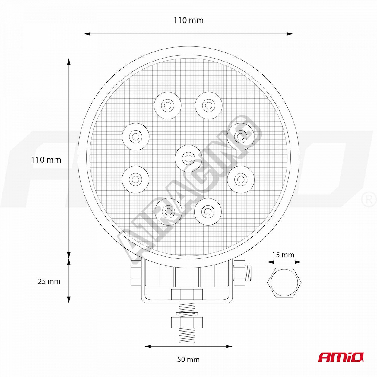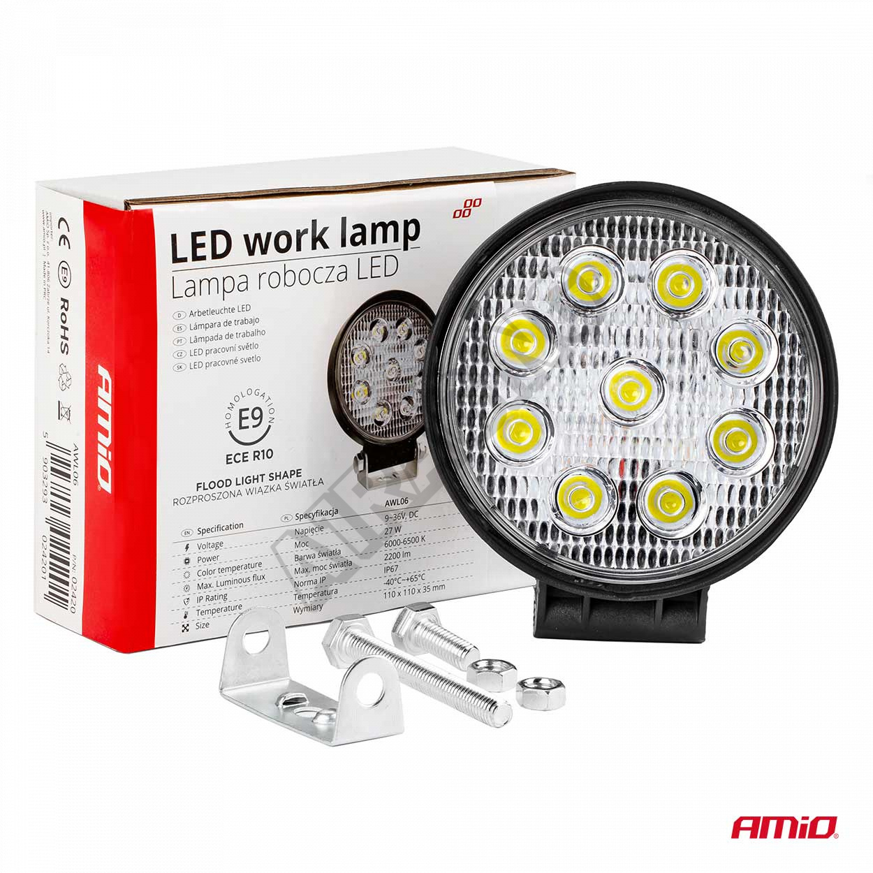 Svetlo pracovné okrúhle 9 LED 110x110 m 35W FLAT 9-36VBalenie obsahuje 1 ks svetla, príslušenstvo a