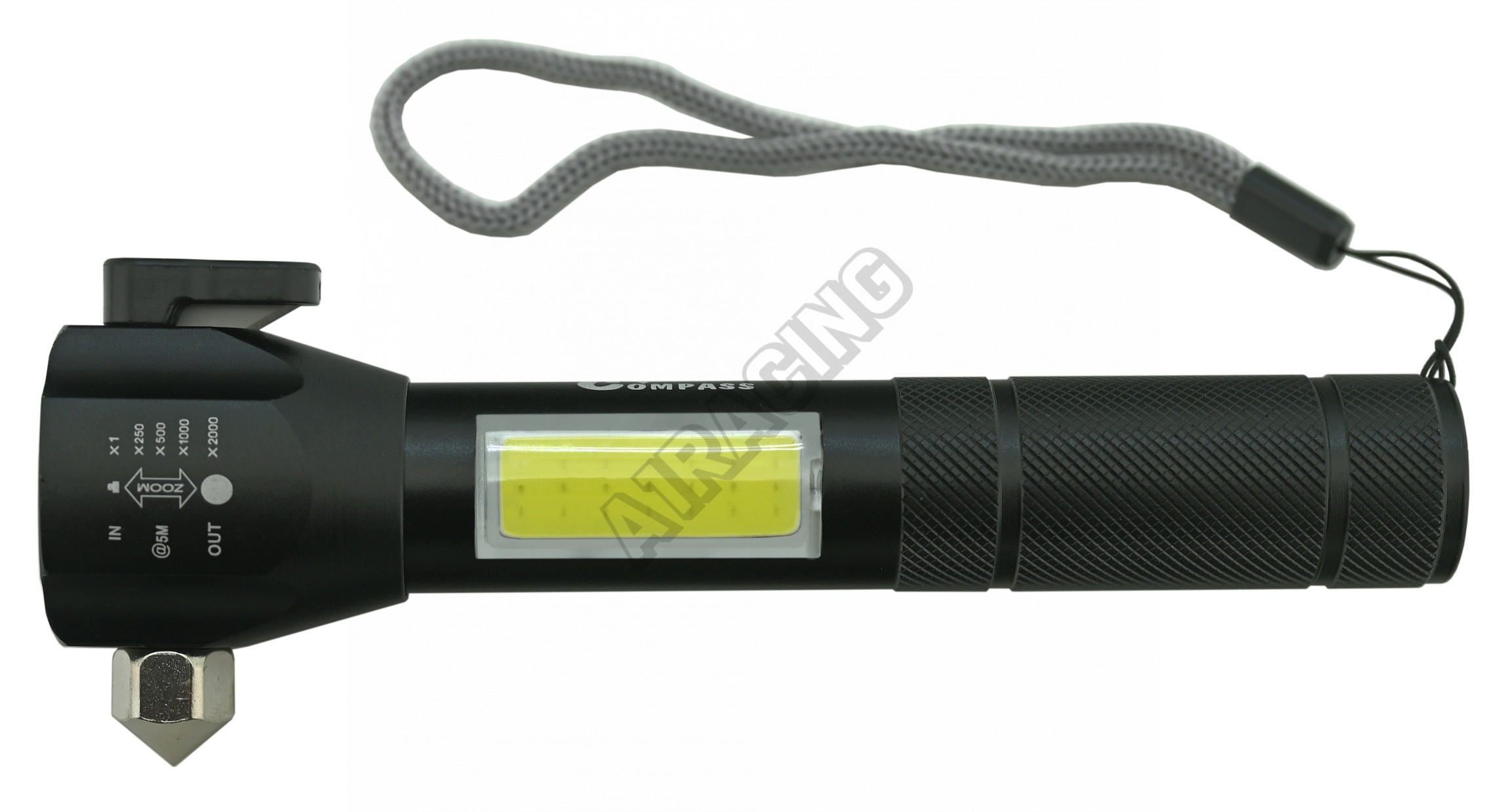 Další výbavou svítilny je řezač pásů a hrot na nouzové rozbití skla na vrchní části svítilny.