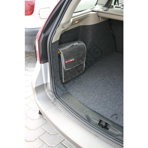 Pohodlná taška pre uloženie všetkých potrieb do kufra automobilu s rukoväťou a uzáverom na suchý zips. Pásik na suchý zips na zadnej a spodnej strane je určený pre bezpečné uchytenie na vnútornej koberec čalúnenie.