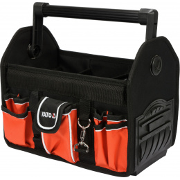Praktická otvorená taška na náradie zhotovená z odolného polyesteru 600D so zosilneným dnom odolným proti vlhkosti.