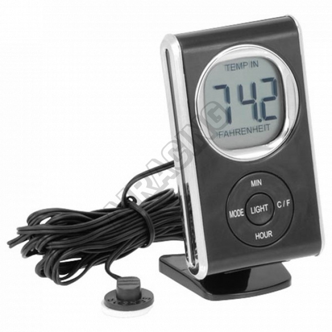 Meranie vonkajšej a vnútornej teploty.Ukazovateľ dátumu a času. LCD display. Pripevnenie pomocou obojstrannej lepiacej pásky so suchým zipsom. Súčasťou balenia je prezentačná batéria CR2032, ktorá pokiaľ je to nutné naleží vymeniť za novú po zakúpení výrobku - je bežne všade k dostaniu.