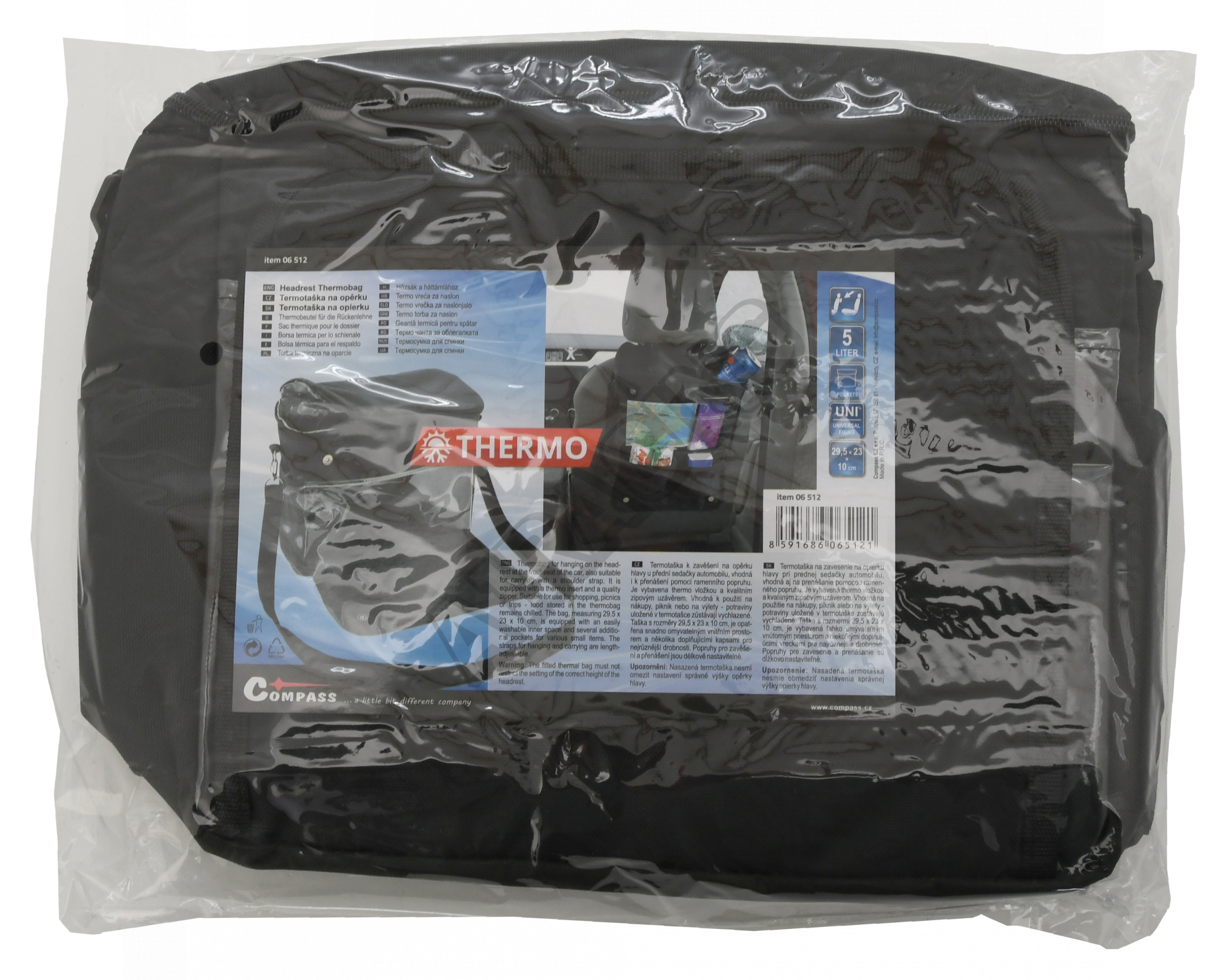 Termotaška na zavesenie na opierku hlavy pri prednej sedačke automobilu, vhodná aj na prenášanie pomocou ramenného popruhu.