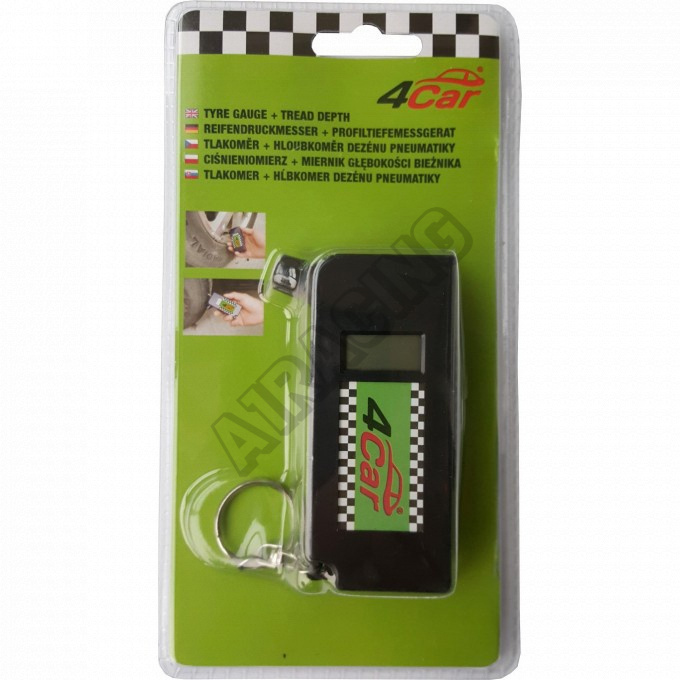 Tlakoměr+hloubkoměr: Digitální měřící přístroj pro měření tlaku v PSI nebo BAR . Obsahuje také měrku na digitální měření hloubky vzorku pneumatik.