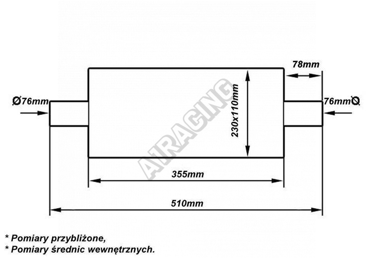 Všetky rozmery tlmiča sú uvedené na obrázku v galérii.