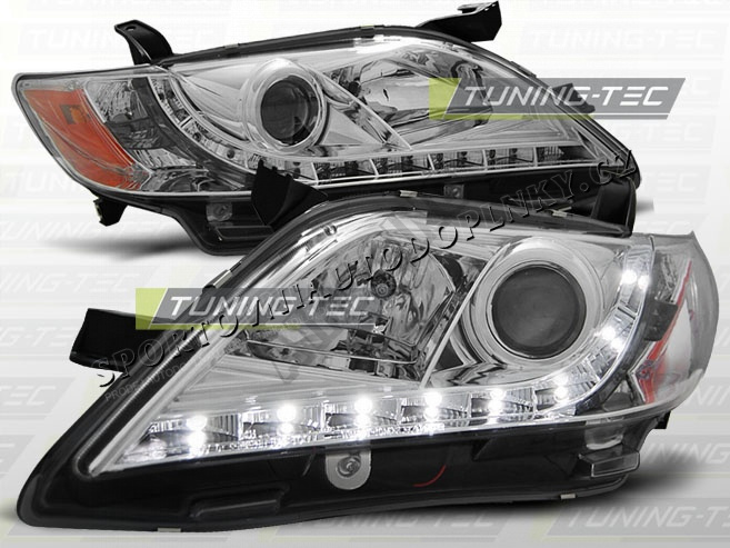 TOYOTA CAMRY 6 XV40 2006-09 PŘEDNÍ ČÍRÁ SVĚTLA DAYLIGHT LED CHROME