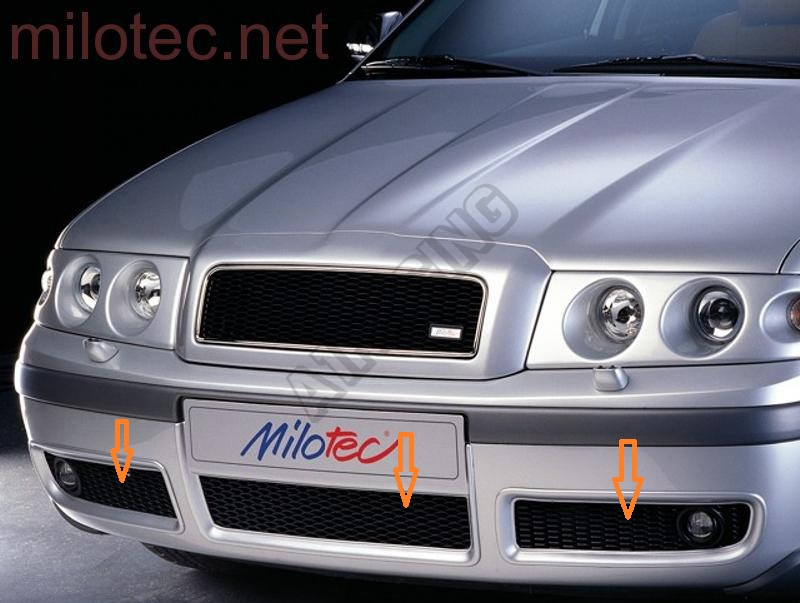 Škoda Octavia Facelift 09/00–› Není určeno pro nárazník verze RSTřídílná sportovní mřížka Milotec s mlhovými světly Hella pro přední nárazník je vyrobena z černého ABS.