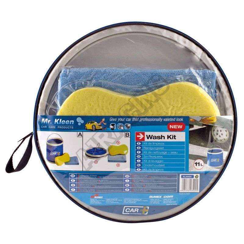 Kvalitný set od odborníkov na čistenie a umývanie nielen áut MR KLEEN. Set obsahuje praktický skladací vedierko 11 L, klasickú huba na umývanie auta a mikrovláknovú utierku.
