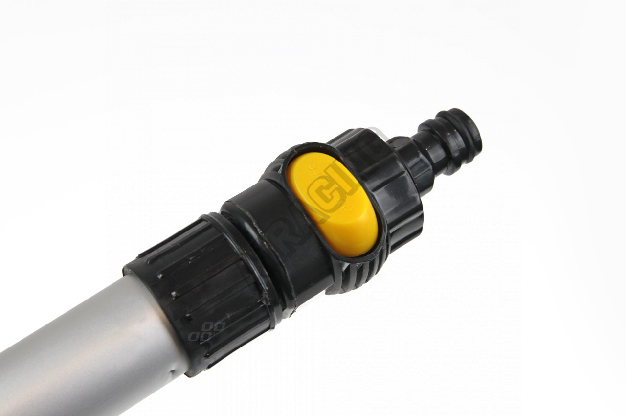 Rukoväť má penové rukoväte, rýchly konektor na pripojenie vodnej hadice a prietokový ventil.