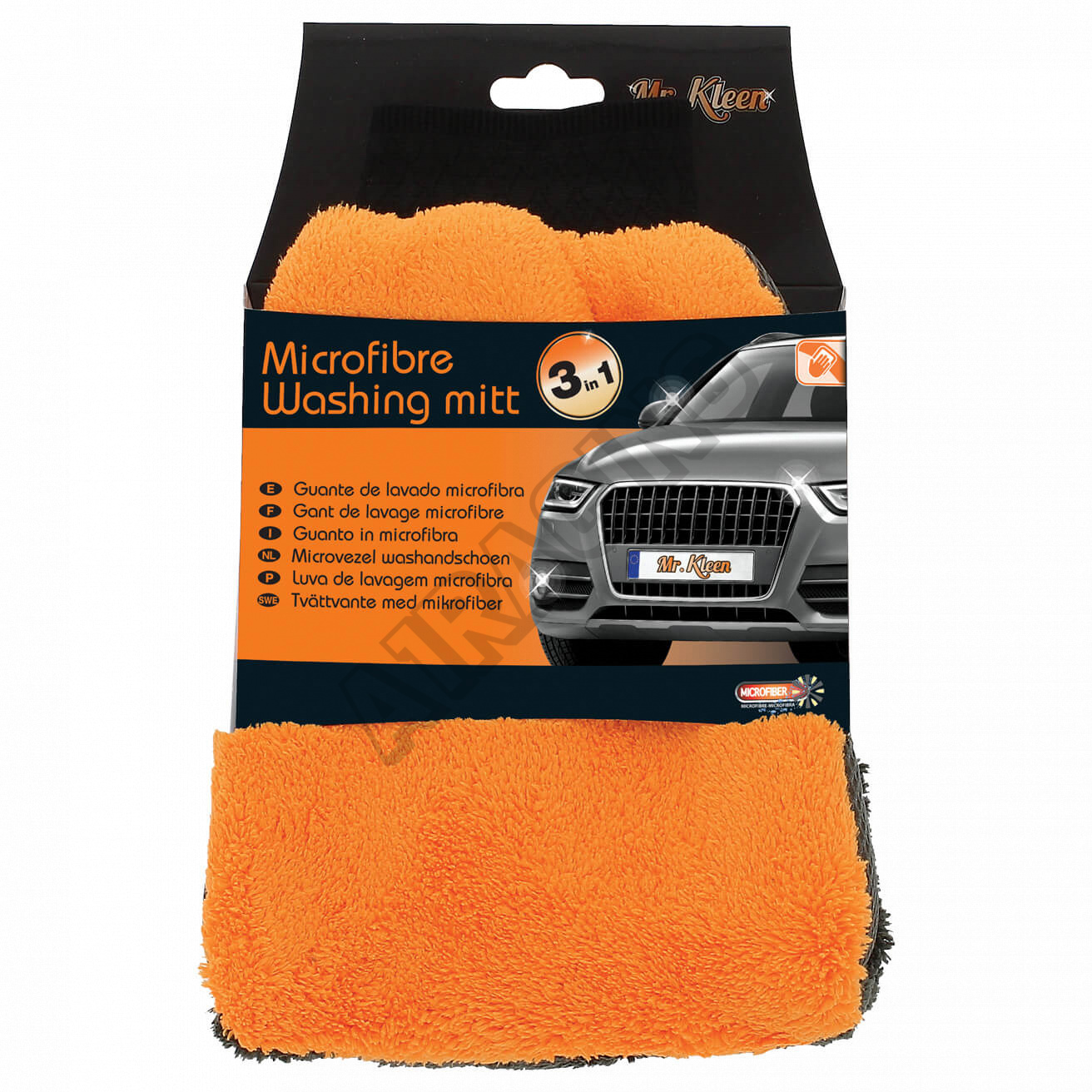 Kvalitné umývacie rukavice z mikrovlákna spoločnosti MR. Kleen je určená na mokré i suché čistenie. Absorbuje viac vody ako bežné huby. Zaistí aj rovnomerné nanesenie šampónu. Je ideálny aj na stieranie prachu - hrubé vlákna pôsobia ako magnet na prach. Pojme niekoľkonásobne viac prachu ako bežná prachovka. Oranžová strana mikrovlákien je určená pre karosériu vozidla na umývanie aj leštenie. Sivá strana slúži na čistenie kolies a väčšej špiny. Bočné hrubšie strany sú na čistenie ťažko odstrániteľné nečistoty ako je napríklad hmyz. Rukavice sa môže prať a opäť znova dookola použiť.