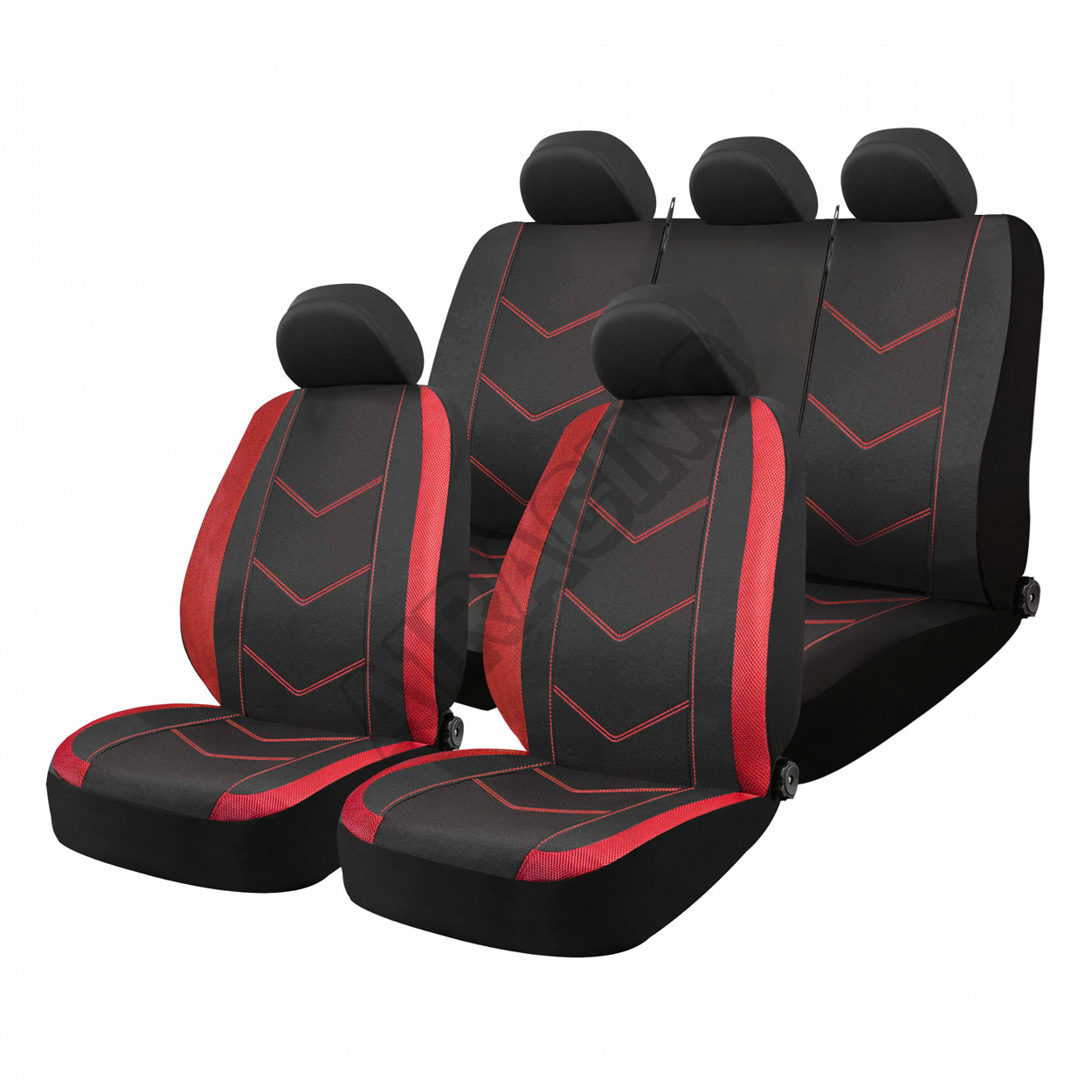 Súprava 9-dielna zahŕňa poťahy na dve predné sedadlá, zadnú delenú lavicu a súpravu opierok hlavy. Univerzálne prispôsobenie pre väčšinu modelov osobných automobilov.