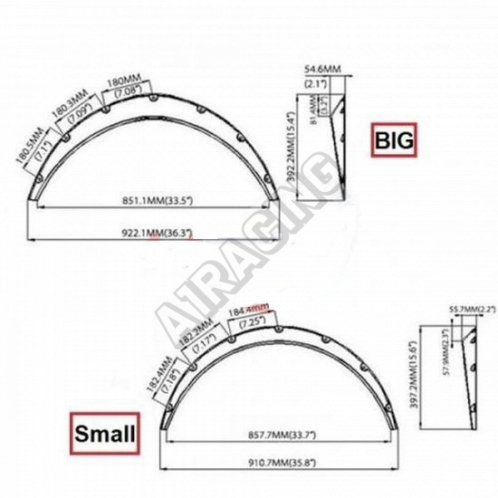 Univerzálne rozšírené lemy blatníkov 910 mm EXTREME STYLE malé 2 ks Súprava univerzálnych rozšírenýc