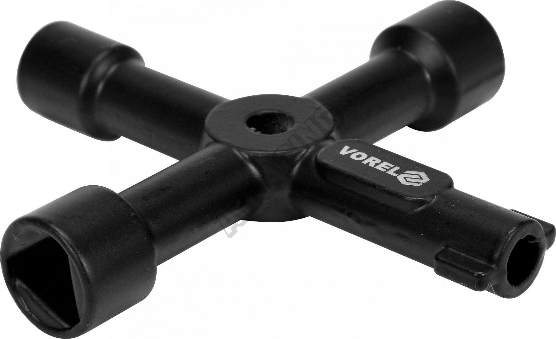 Přesná specifikace nástrojů čtverec 6 mm, čtverec 8 mm, trojúhelník 10 mm a kruh s křídly průměr 6 mm. Klíč je zhotoven z litiny na bázi zinku. Povrch je lakován černým práškováním.