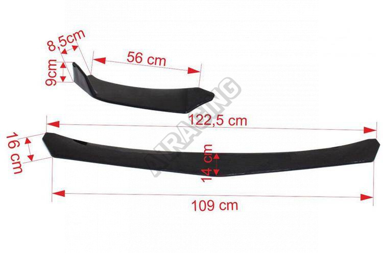 Univerzální podspoiler pod přední nárazník 3-dilný II Hodí se pro automobily s přední šířkou od 1,