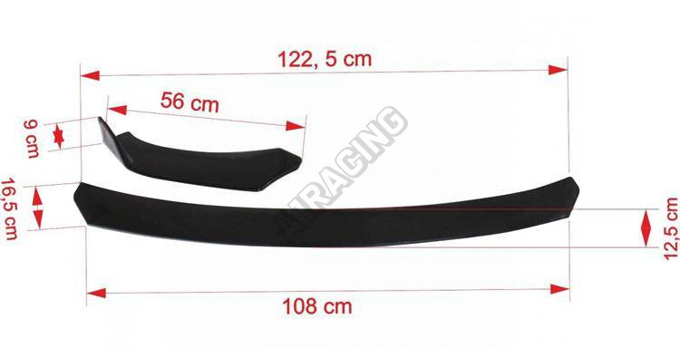 3-dielny splitter pod predný nárazníkFunkcia: Vysoko kvalitný materiál ABS, ľahký, antikorózny, veľ