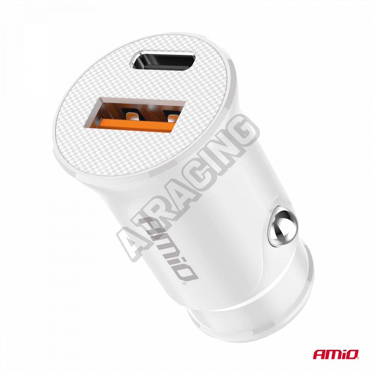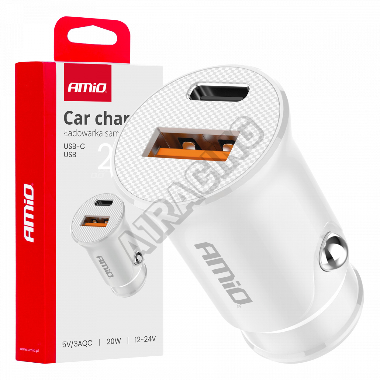 USB-A + USB-C 20W autoadaptér AMIO-03877