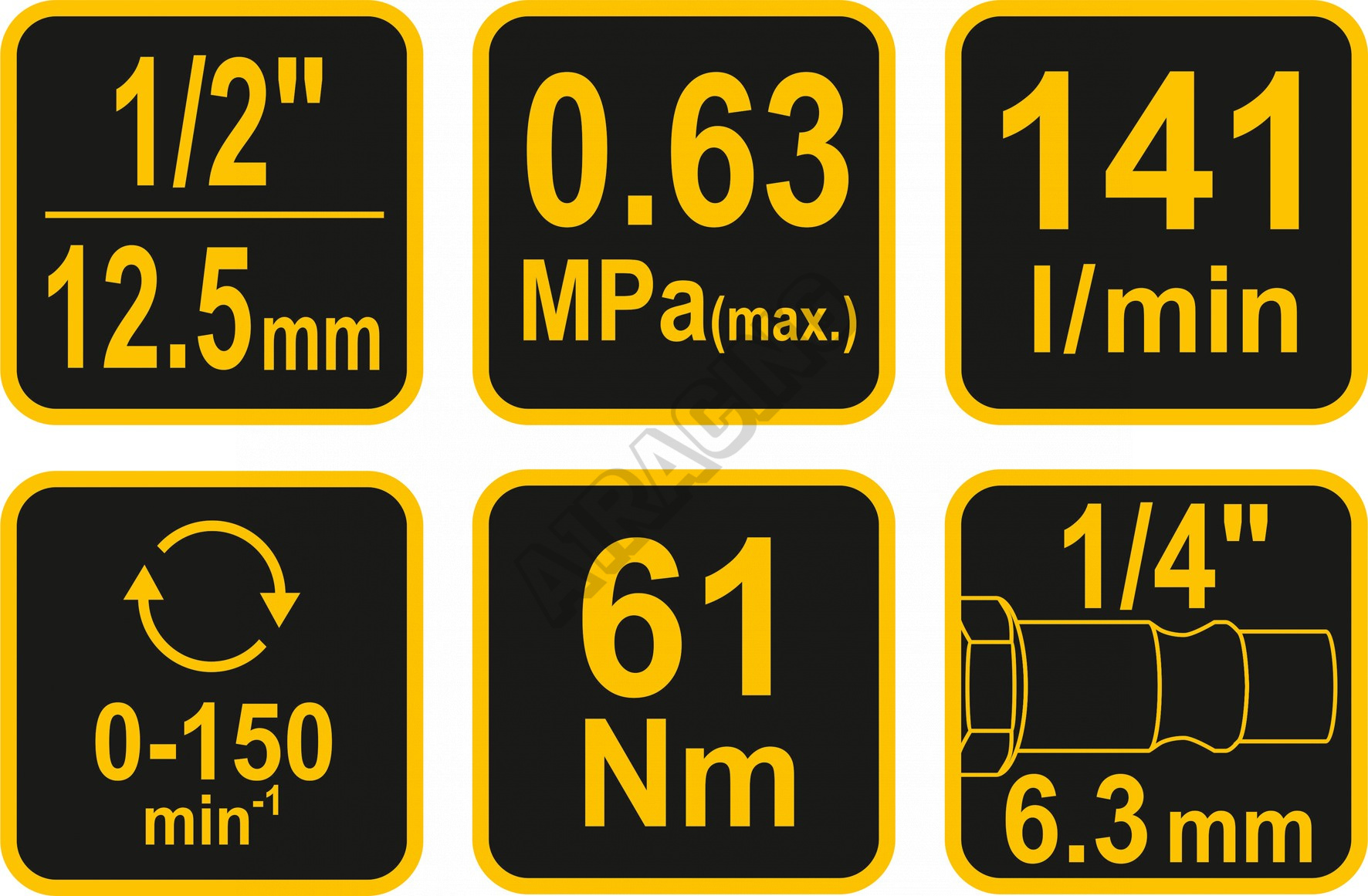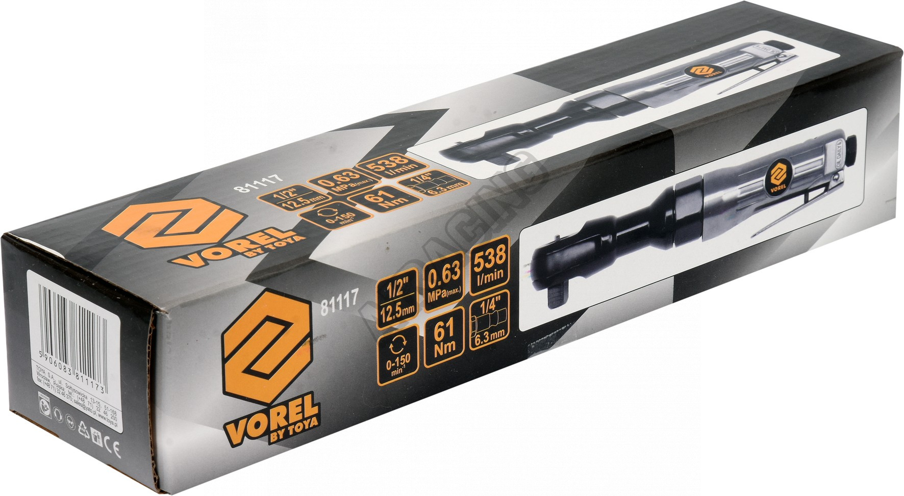 Pneumatická ráčna 1/2" o délce 254 mm. Je nástroj poháněný proudem stlačeného vzduchu pod vhodným tlakem.