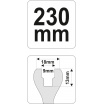 Stahovák sponek čalounění. Stahovák má délku 230 mm a šířku 18 mm. Část klíče určená pro demontáž sp