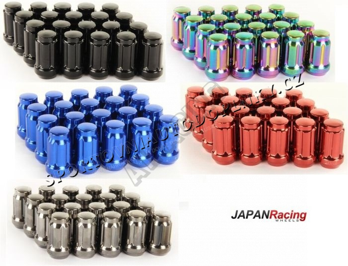 Balení obsahuje 20 ks matic + ořech pro nasazeníÚzke kované športové matice kolies Japan Racing II