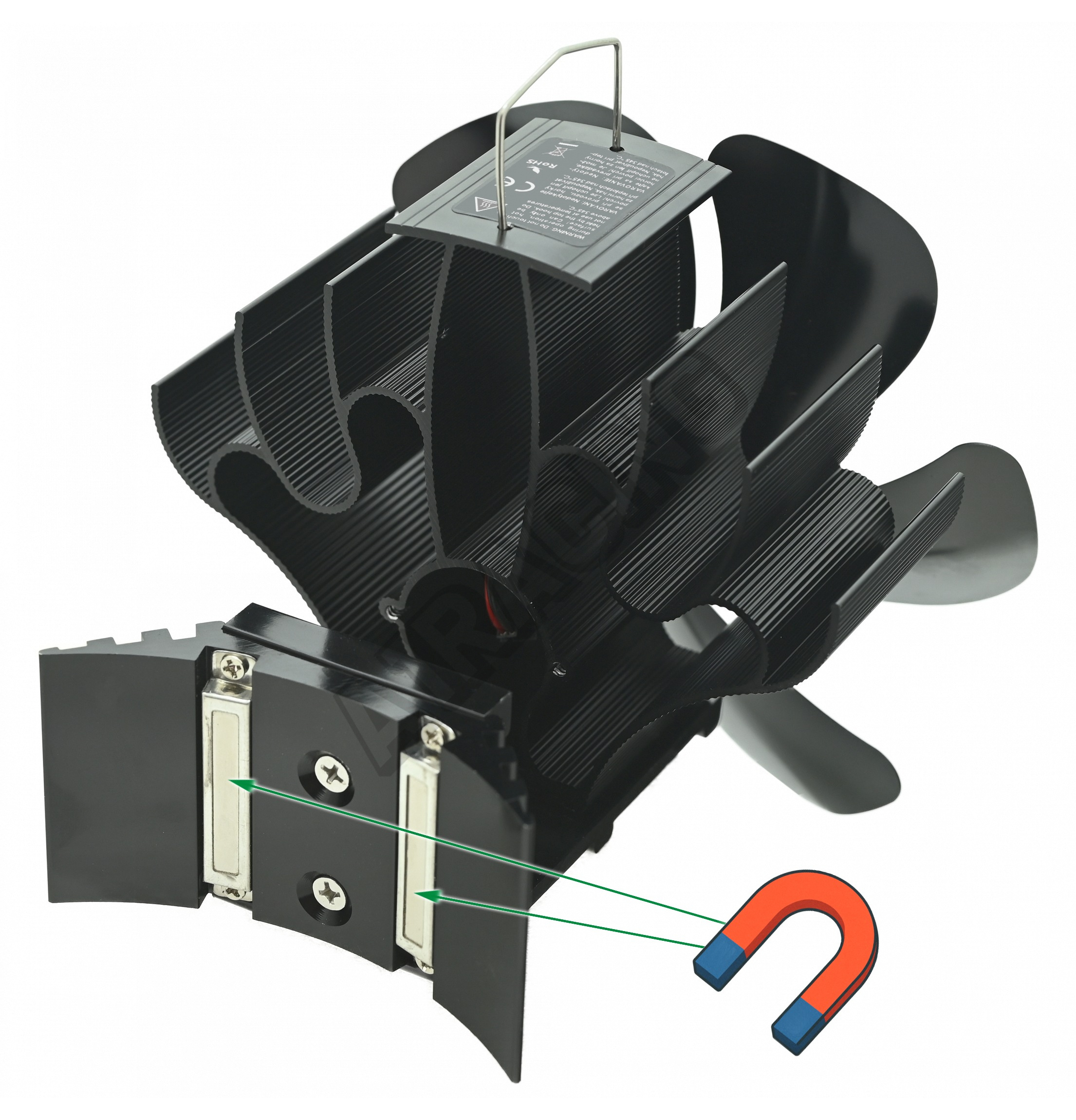 Šestilopatková vrtule se začne plynule rozbíhat přibližně při 80°C a s rostoucí teplotou (optimální rozsah 80–250 °C) se zvýší otáčky i objem proudícího vzduchu. Vrtule o průměru 160 mm dokáže rozhýbat proudění až na úroveň okolo 210 m3/h a svým tichým chodem neruší atmosféru u krbu.