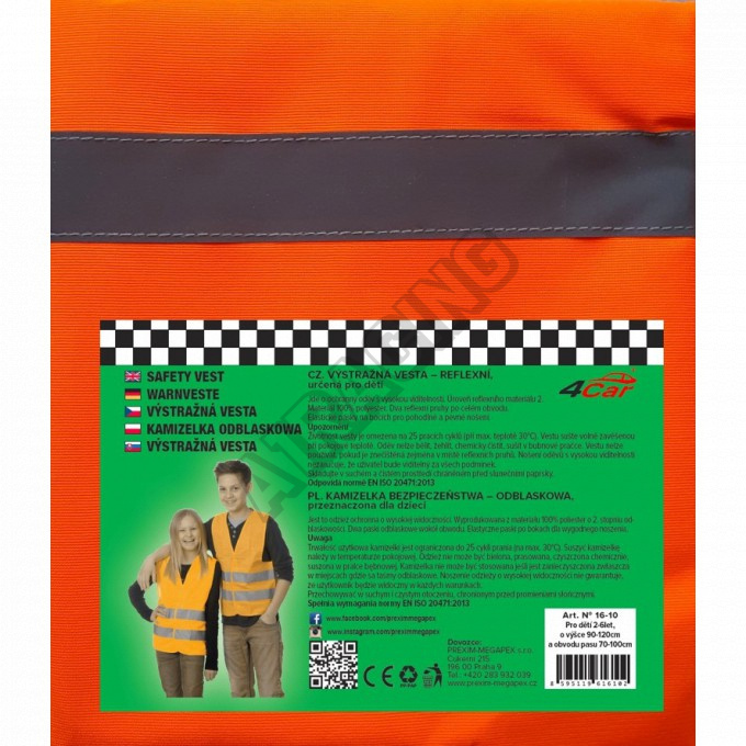 Vesta výstražná oranžová detská 4-8 rokov Ide o ochranný odev s vysokou viditeľnosťou. Úroveň reflex