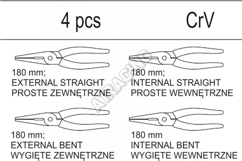 | Kleště vnitřní ohnuté | 1x 180 mm |