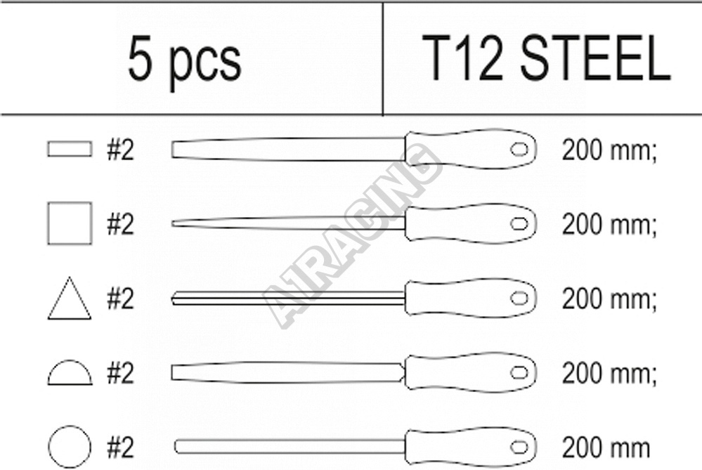 Sada 5 kusů zámečnických pilníků z oceli. Sada je přehledně srovnána ve vložce do zásuvky z PVC.Tech