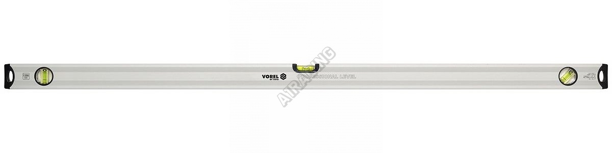 Vodováha vyrobená z eloxovaného hliníkového profilu. Má tři lahvičky pro označení svislého, vodorovn