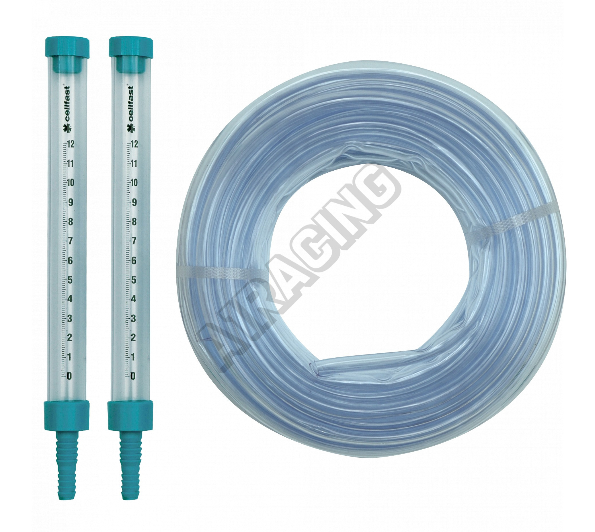Vodní vodováha 15 m dlouhá, je určena k vyrovnání vzdálených bodů. Měřicí válce s čitelnou stupnicí