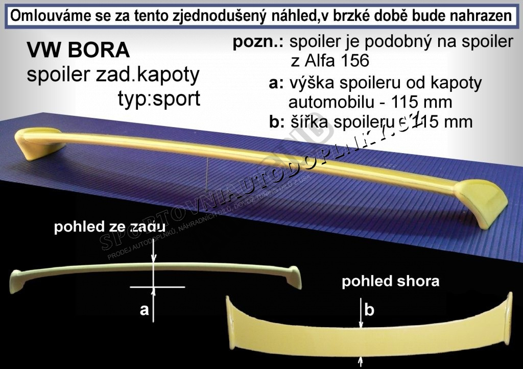 Volkswagen Bora (98+) spoiler zadnej kapoty (EÚ homologácia)