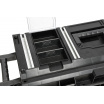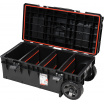 Pojízdný plastový kufr se dvěma organizéry ve víku s nastavitelnými přepážkami.