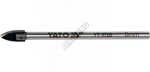 Vrták do skla, keramiky, keramických obkladů, dlažeb adalších obdobných materiálů. Břit je vyroben z carbidu wolframu tvrdosti HRA-90.