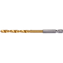 Vyrobeno z rychlořezné HSS oceli s Titanovým povlakem a vrcholovým úhlem 135°. Vrták je opatřen HEX 1/4" uchycením.