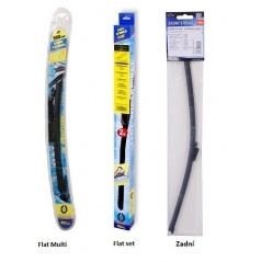 Stěrače FLAT SET (sada 2 ks na celé auto). Vysoce kvalitní pružný člen plochého stěrače zajišťuje stejnoměrný tlak grafitového břitu v celé jeho délce, což zamezuje rozmazávání nečistot a vytváření pruhů.