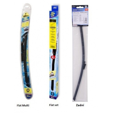 Stěrače FLAT SET (sada 2 ks na celé auto). Vysoce kvalitní pružný člen plochého stěrače zajišťuje stejnoměrný tlak grafitového břitu v celé jeho délce, což zamezuje rozmazávání nečistot a vytváření pruhů.